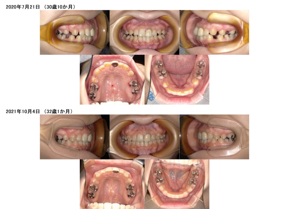 抜歯した隙間も、前歯の位置も変化したのが分かると思います。
