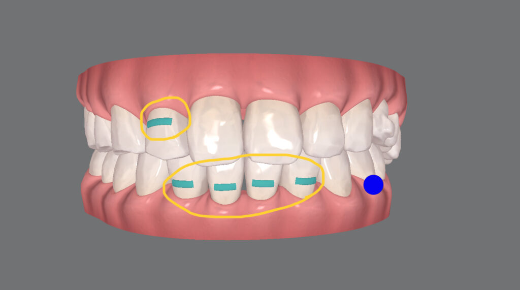 歯が傾いて回転している場合、インビザラインだけではその回転を効果的に直すのが難しいことがあります。パワーリッジを使うことで、特定の歯に集中的に力を加えることができ、回転を効率的に修正することができます。