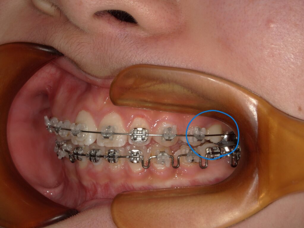 - 噛み合わせによって、ブラケットが常に他の歯に当たっている位置