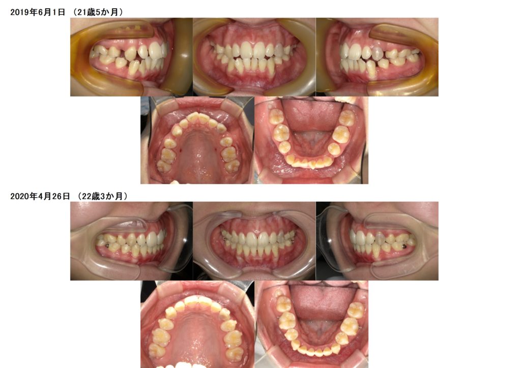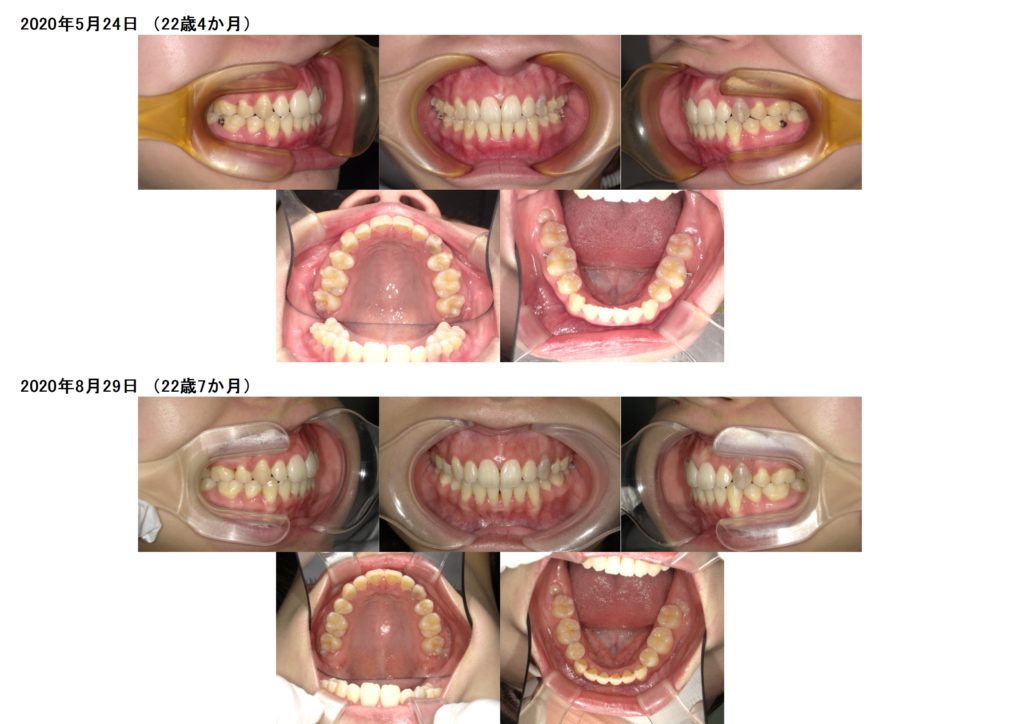 ↑抜歯、突出ケースでもしっかりとマウスピースを使うとこんなに早く変化が分かります。ここから再度噛み合わせの微調整に入るためのマウスピースを作成します。