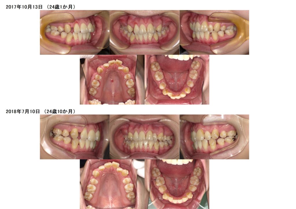 ↑治療前、治療後の口腔内写真の比較です。
