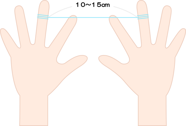 - 約40cmほどフロスを取り、指に巻きつける