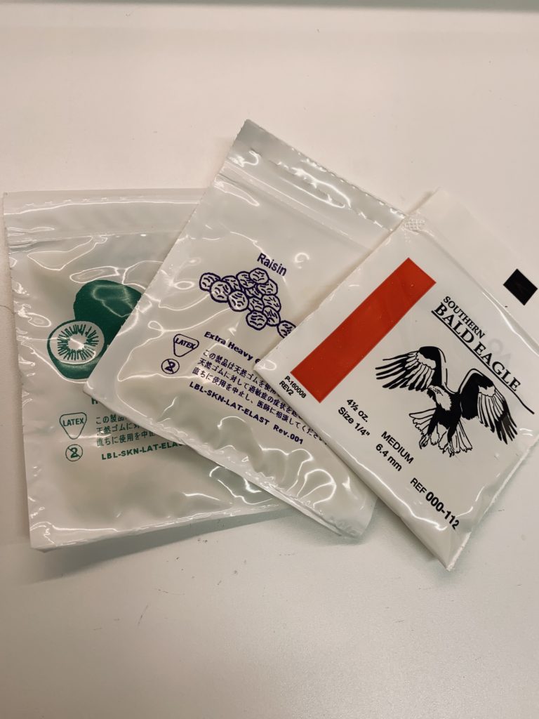 ↑この顎間ゴムを肌身離さず、色々な場所へ置いたり、学校やお仕事のバッグにも必ず入れて、なくしたとき、顎間ゴムが切れてしまったときにも対応できるようにしていただくといいと思います。