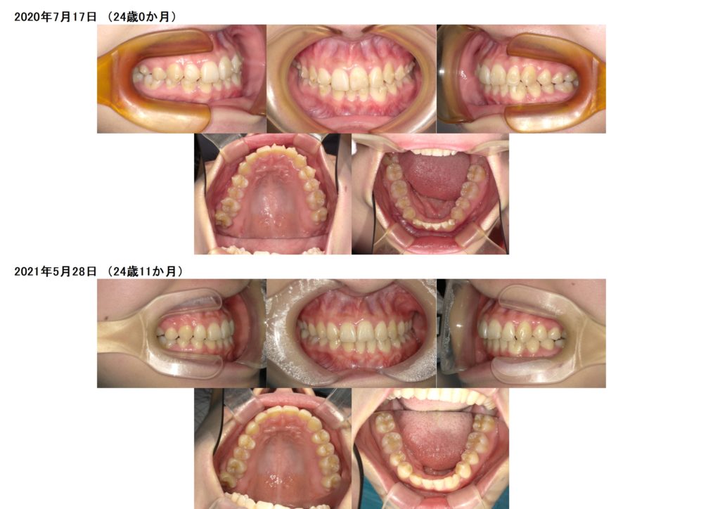 このように、矯正治療をすると、目立ちにくくなりますし、噛み合わせも確立することができます。