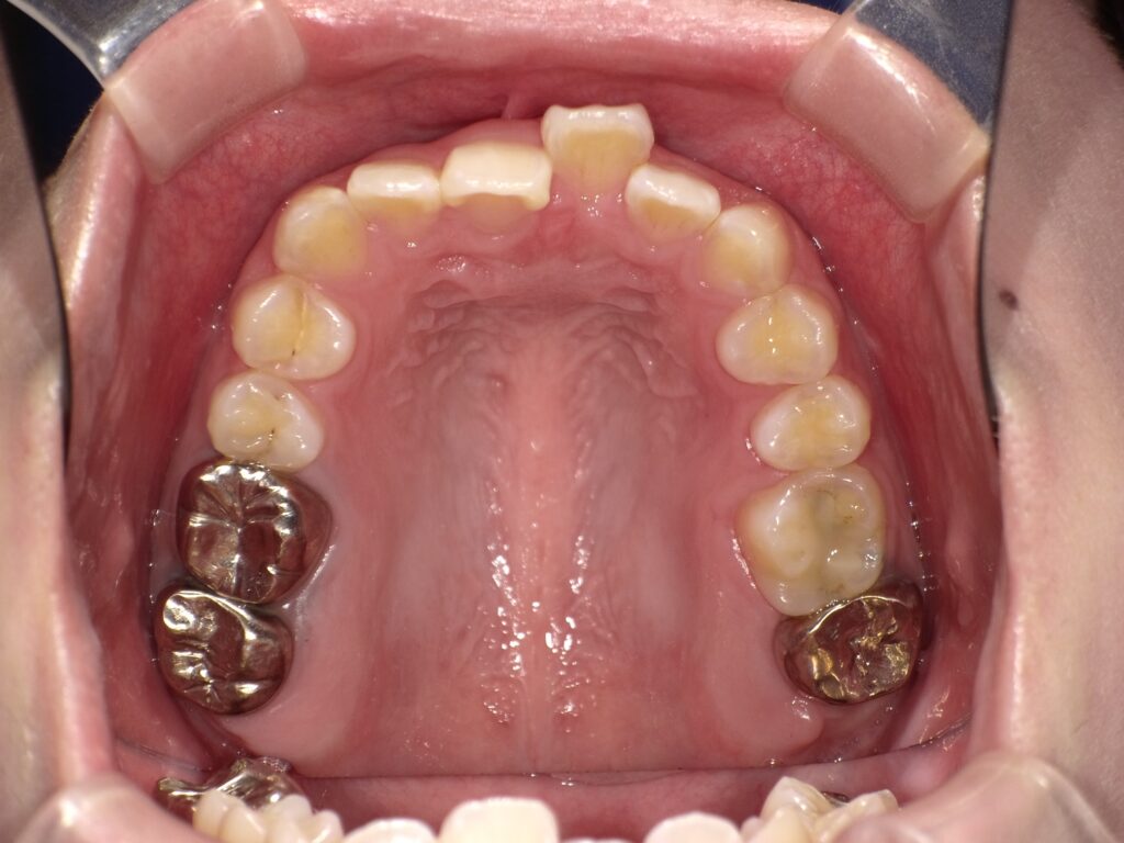 - 上下の顎の成長に差があると、片方にだけ歯が並びきらないことがあります。